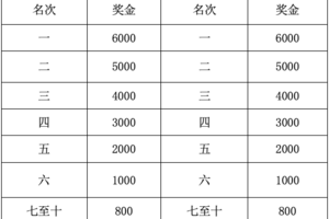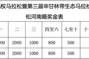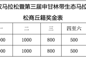 设商丘籍运动员奖,商丘籍运动员按照净成绩单独排列名次。获得男子和女子前三十名的运动员,将分别获得以下奖金。