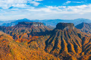 国家级风景名胜区,以丹霞地貌、层叠式壶穴群(潜龙十八潭)和瀑布景观闻名,秋季红叶景观尤为突出。