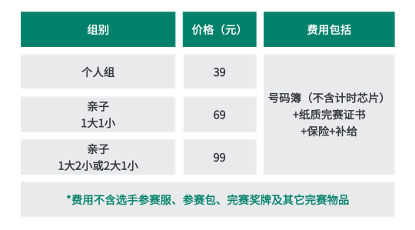 注:报名费包含参赛号码布(不含计时芯片)、纸质完赛证书、活动当天个人意外保险以及沿途补给。不含选手参赛服、参赛包、完赛奖牌及其它完赛物品。