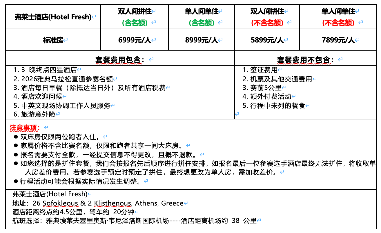 (一)2026年雅典马拉松单名额费用: