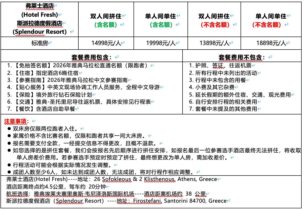 (三)2026年雅典马拉松7天6晚旅行套餐(11月6日-11月12日)