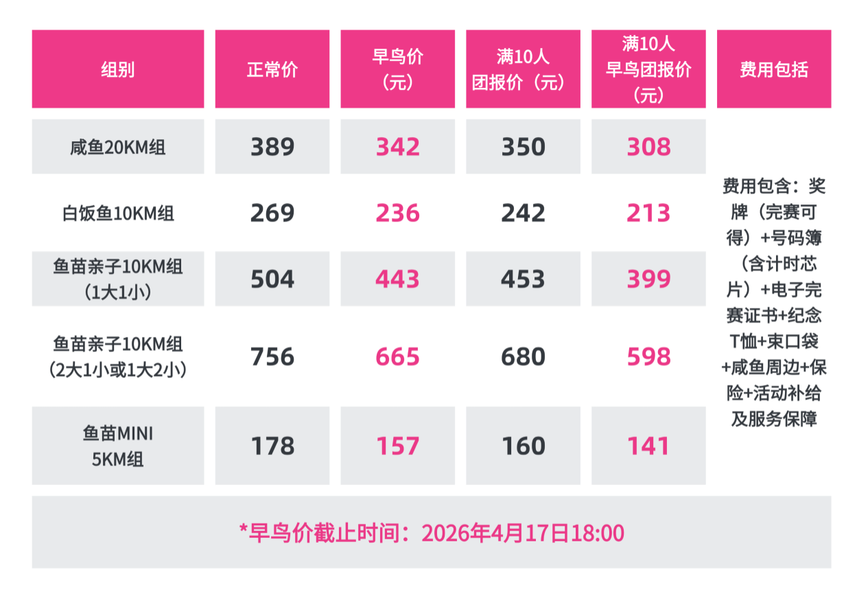 白饭鱼10KM组(个人):面向18-65周岁的社会群众。