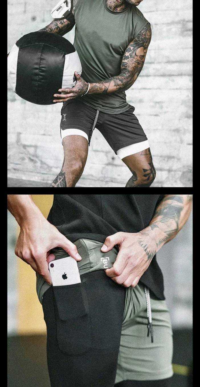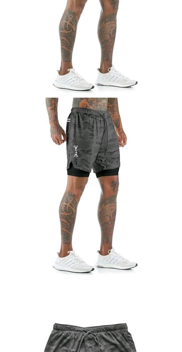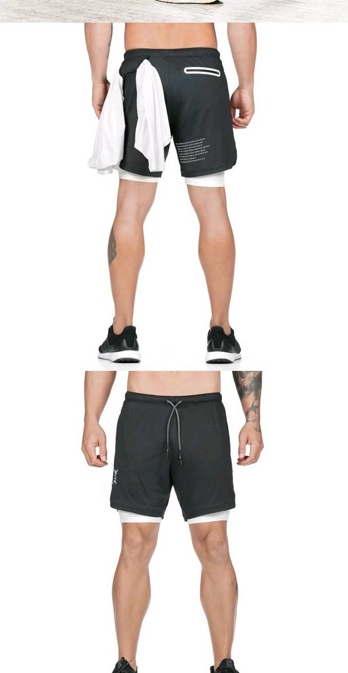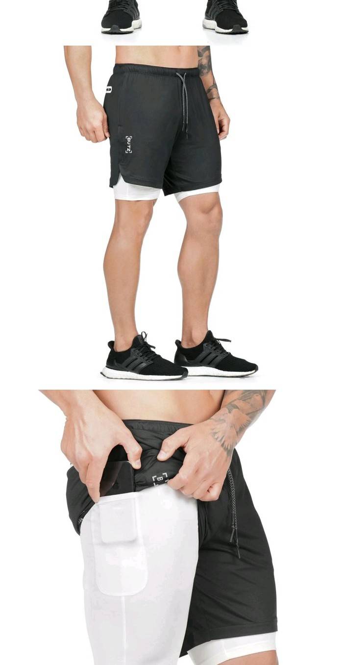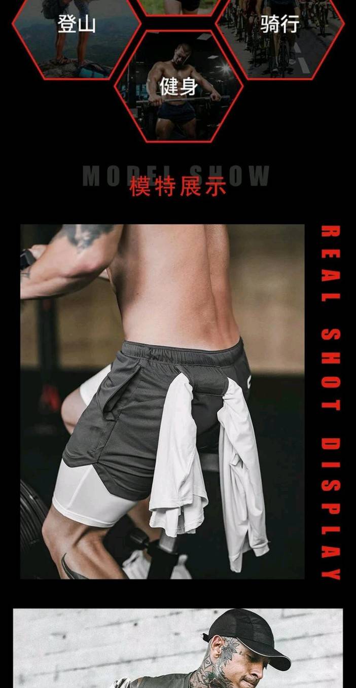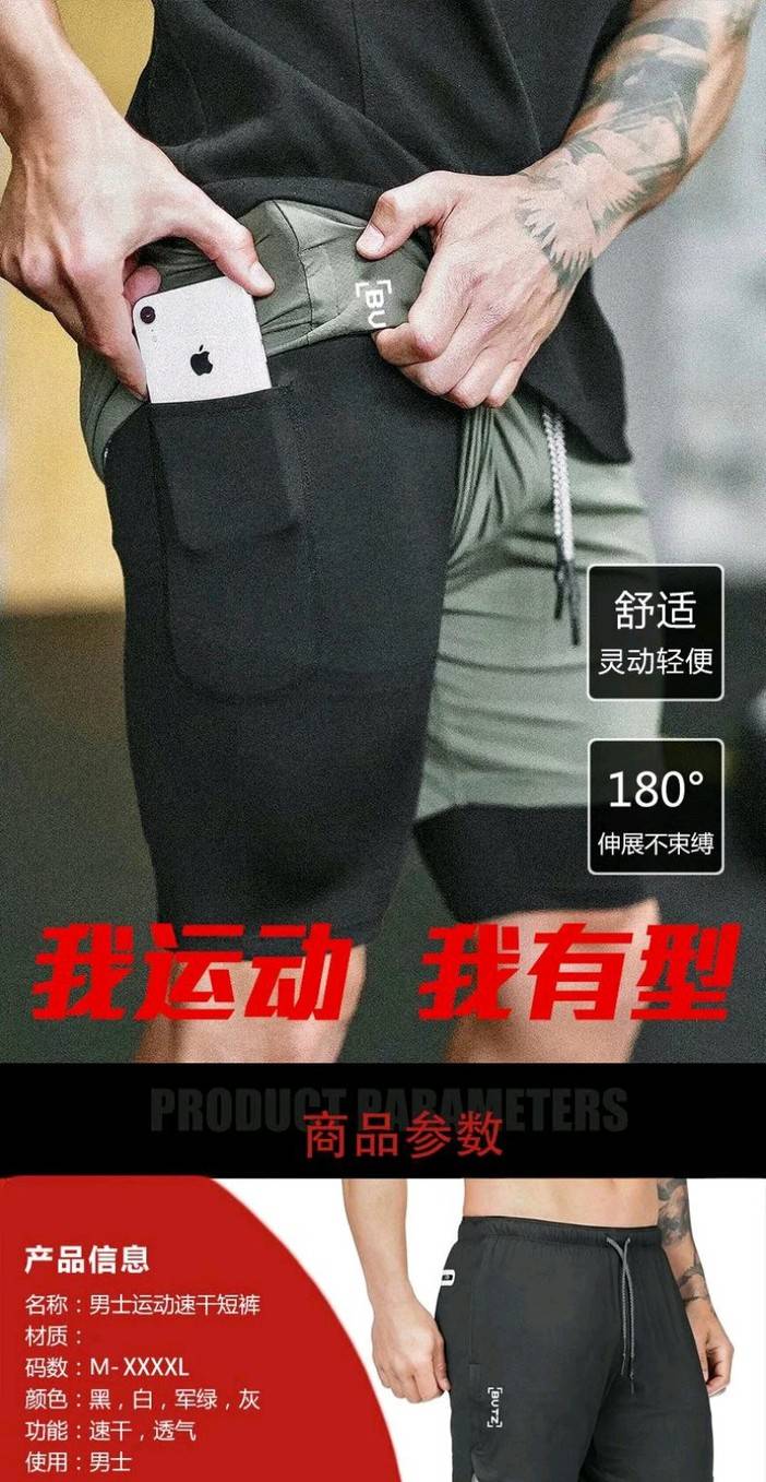 多功能速干运动短裤男夏季速干大码网眼跑步健身假两件五分裤