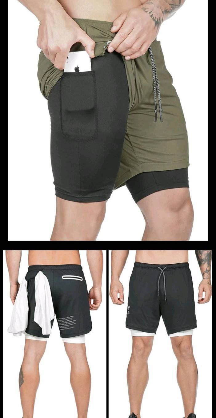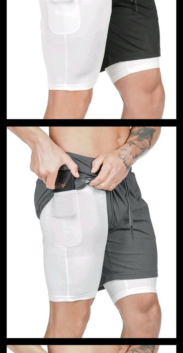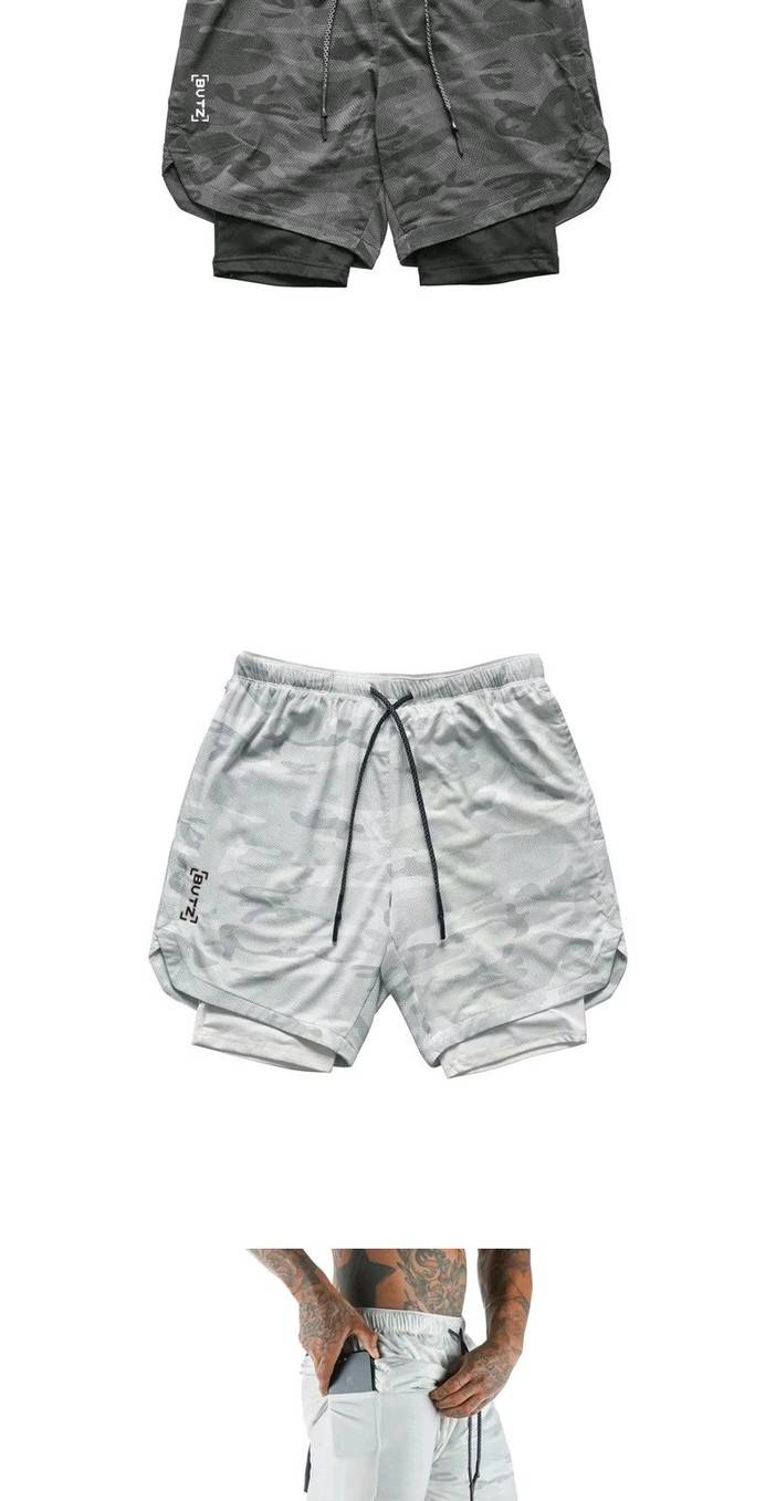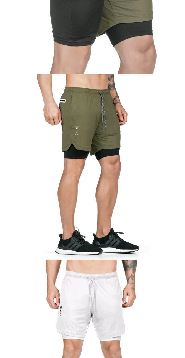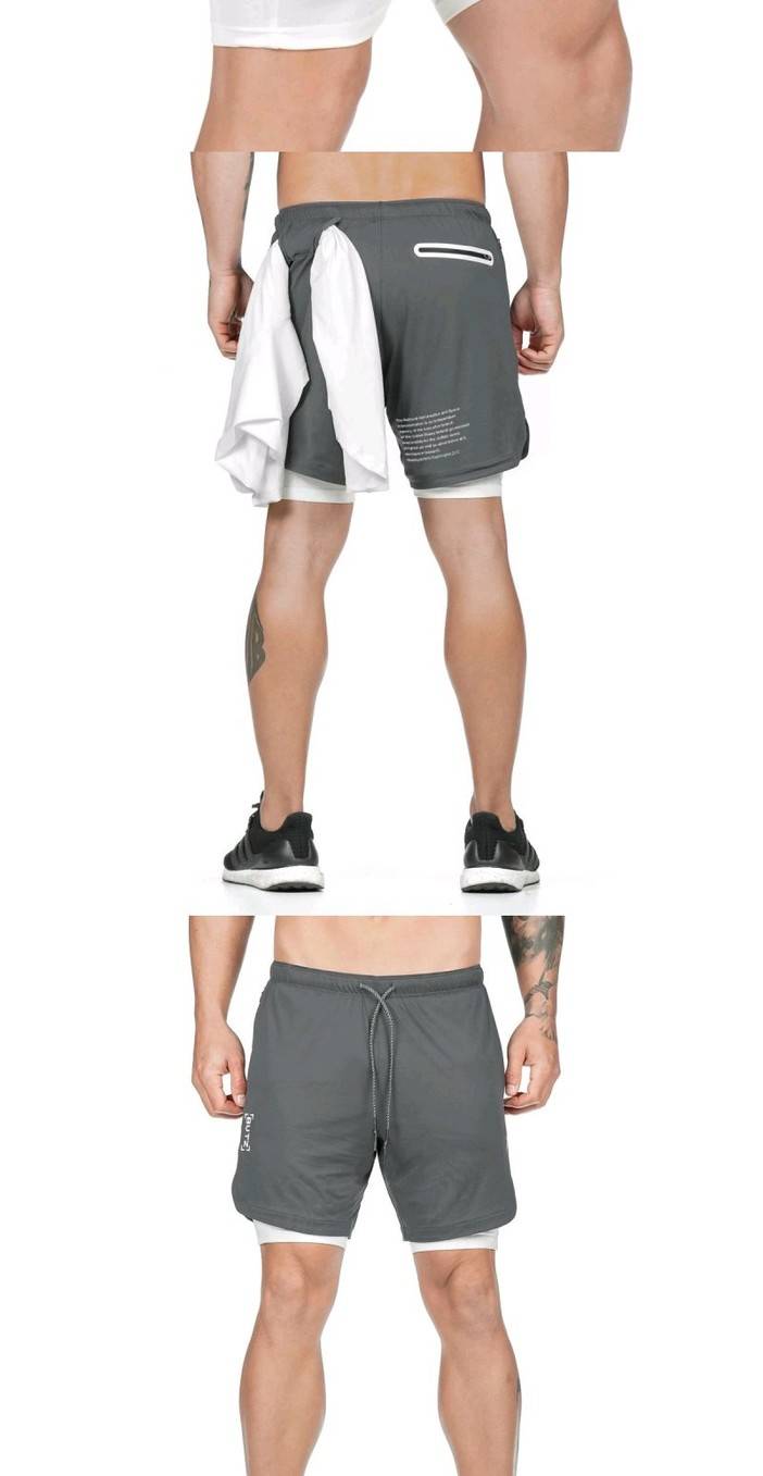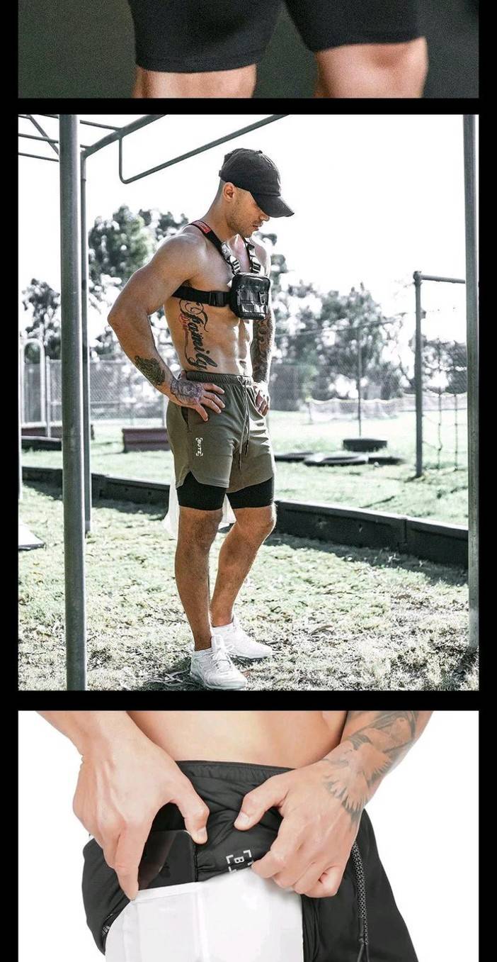 多功能速干运动短裤男夏季速干大码网眼跑步健身假两件五分裤