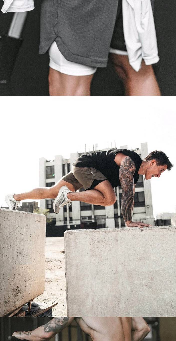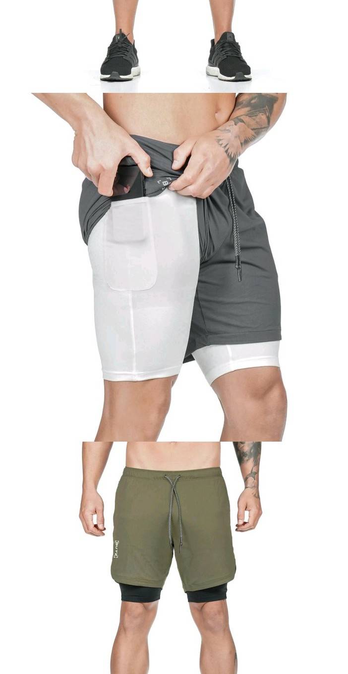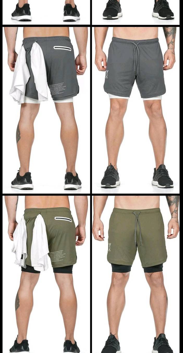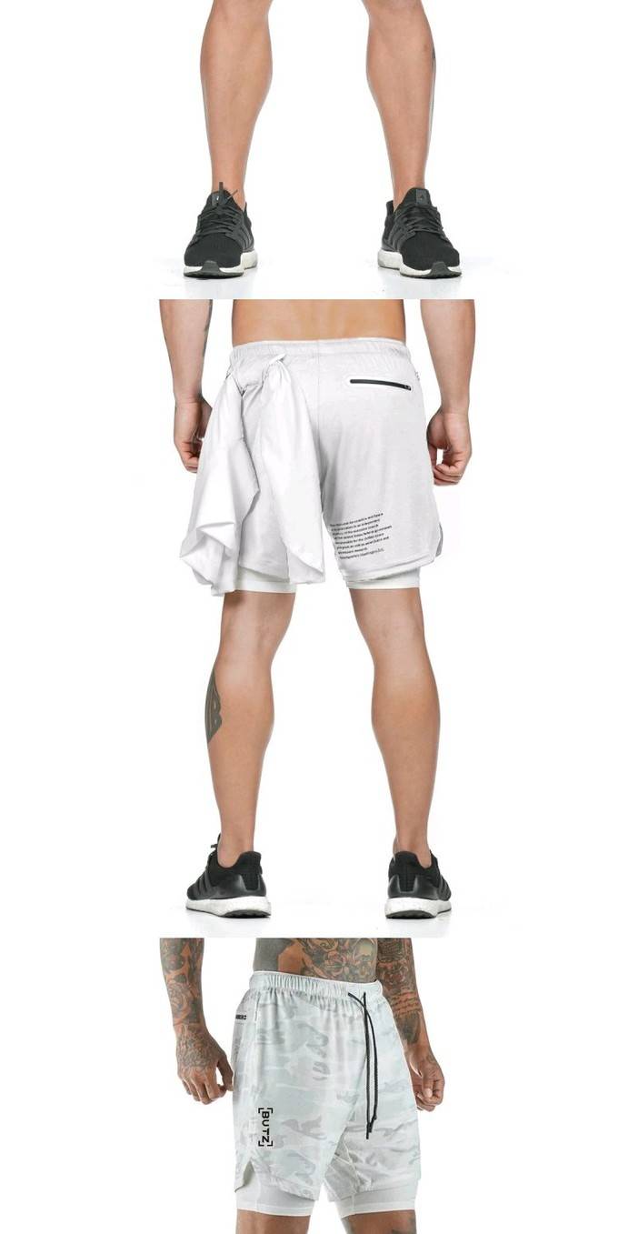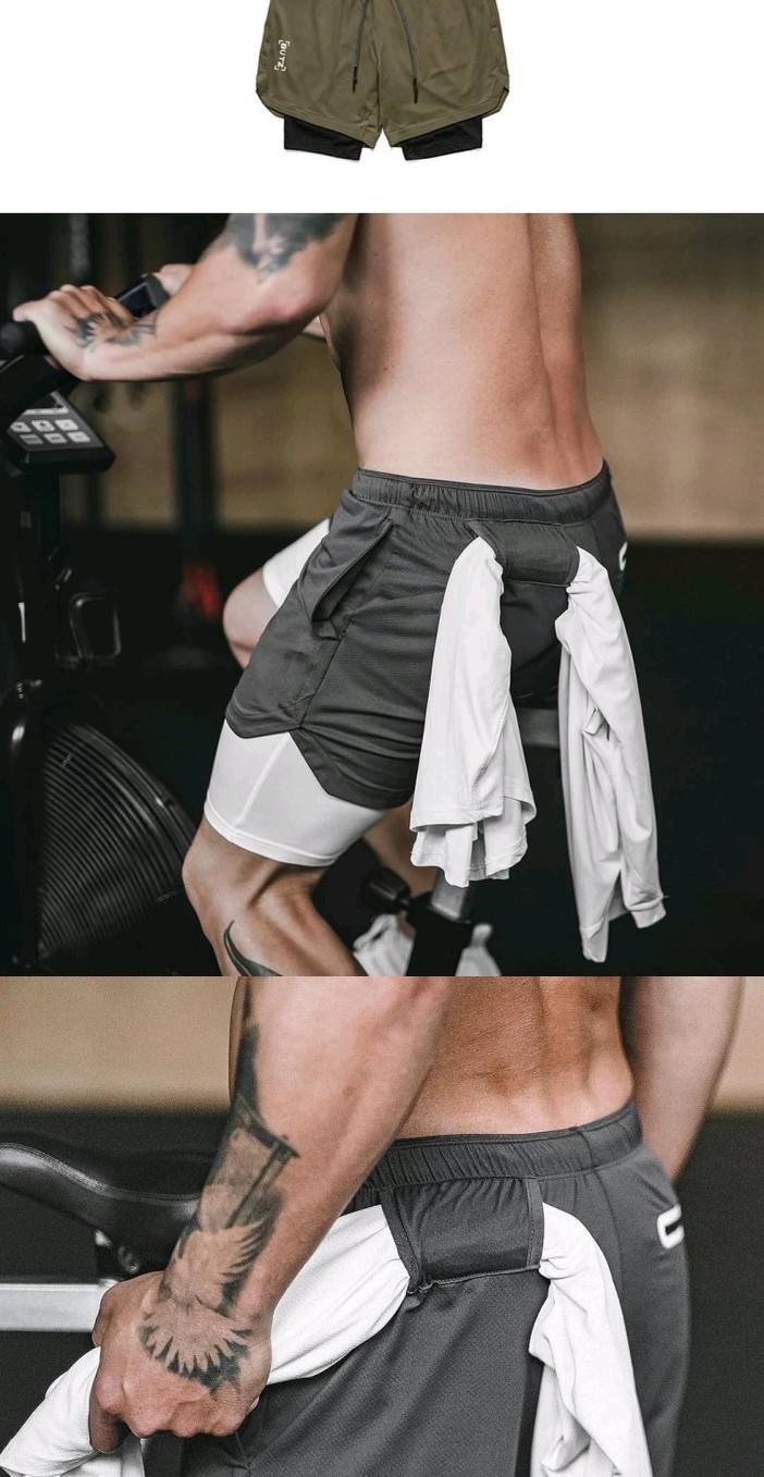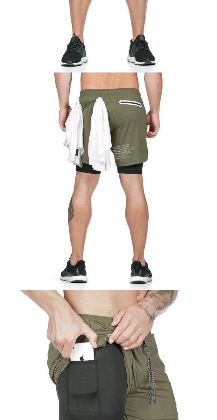 多功能速干运动短裤男夏季速干大码网眼跑步健身假两件五分裤