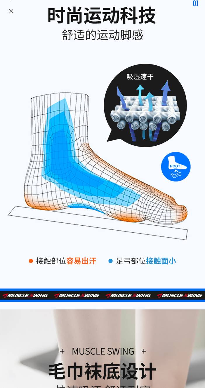 MSW805肌动马拉松专业运动短袜毛巾底防滑跑步袜男女短筒速干篮球训练袜