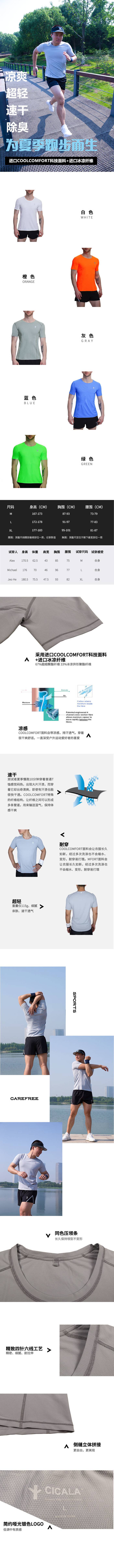 吉卡乐男士5色夏季跑步速干短袖训练凉感超轻 夜跑晨跑马拉松短袖