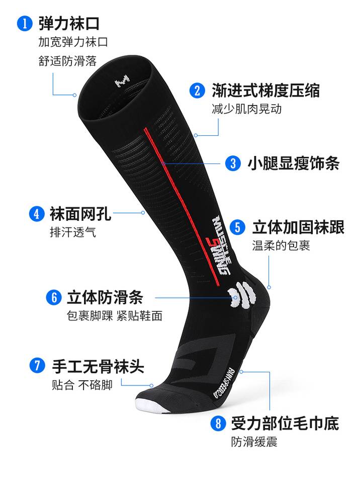 肌动831长筒马拉松跑步压缩袜防滑减震越野运动袜