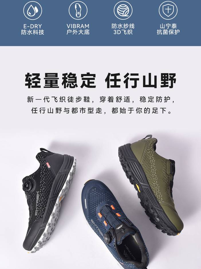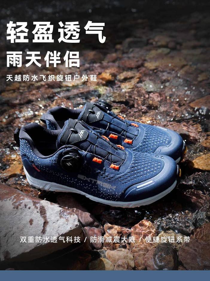 天越/Extrek E309防水飞织徒步鞋男户外防滑耐磨透气旋钮登山鞋女夏季