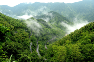 船坞山:主峰形如大船,海拔744米,是萧山最高峰。山中竹林森森,竹子又粗又长,竹林中时常云雾缭绕,翠意流苏,人入竹林不见日,仿佛置身仙侠奇境。由三起三落的绝望坡登顶船坞山,可以一览三江。