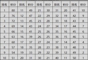 2、积分相同情况:若出现两名选手的积分相同,则视两人为并列排名,后续选手排名依次顺延。如:两位选手同分,排名为1、1,积分低于前两位的下一位选手排名为3。
