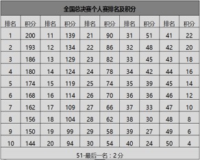 2、积分相同情况:若出现两名选手的积分相同,则视两人为并列排名,后续选手排名依次顺延。如:两位选手同分,排名为1、1,积分低于前两位的下一位选手排名为3。