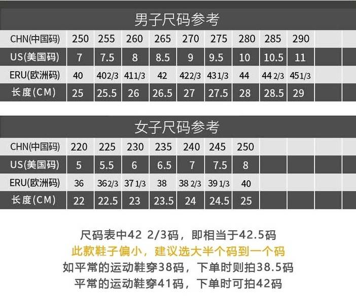 鞋子为偏小码。建议按平常穿的运动鞋码加大半个码。